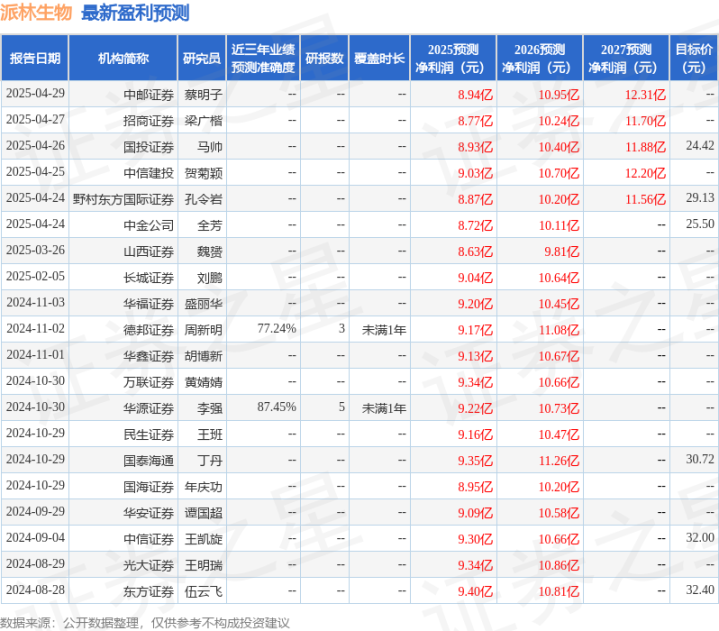 最新盈利预测明细如下: